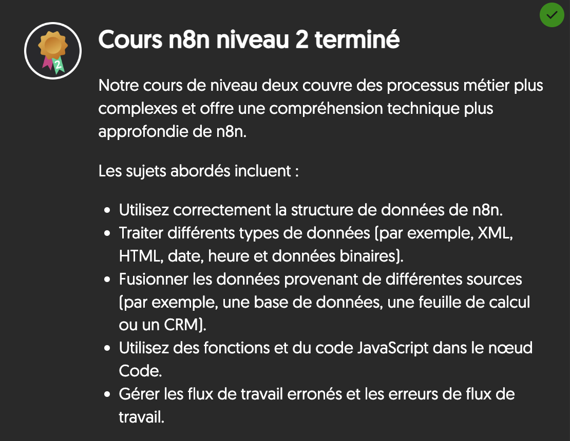 Que ce soit pour automatiser des rapports, manipuler des données ou connecter différents outils entre eux, tout est devenu plus fluide. Je recommande vraiment à ceux qui veulent gagner en productivité et comprendre comment tirer le meilleur de N8N. Merci encore Valentin ! 🙌